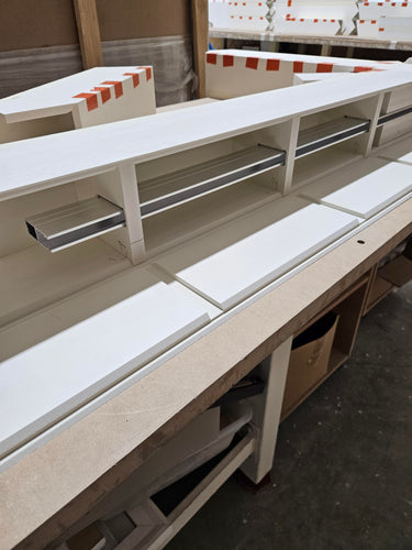 To ensure a seamless installation, review the detailed Installation Instructions and confirm you have the necessary tools and materials. We supply 4 oz of PVC glue, an assembly bracket, a supporting bar, and hanging wire (see picture). If larger than 8 feet, then 2 supporting bars are provided with 4 screws.