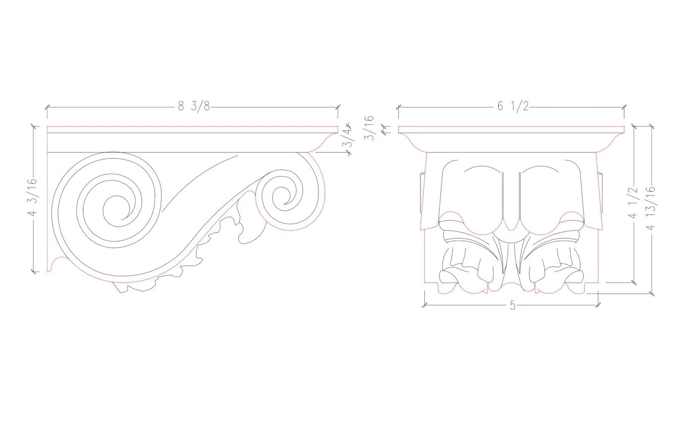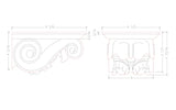 Decorative wall brackets 4-3/16" high x 4-1/2" wide x 8-3/8" projection.