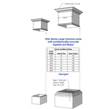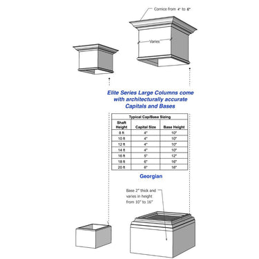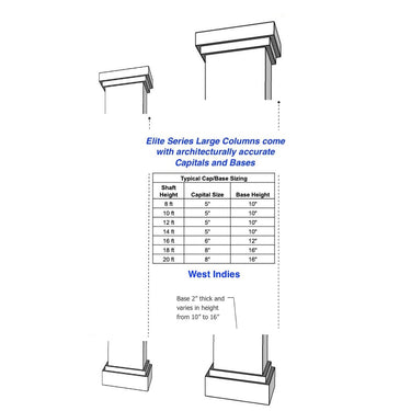 Our Mega Wraps come complete with a few convenience items for ease of installation, including specifically formulated PVC adhesive, tape, large installation cleats, and detailed instructions. The column shaft is made from four 3/4" thick PVC panels with a lock mitre joint for glue assembly. The actual outside dimension of the shaft is approximately 17 ⅞", and the inside measurement is about 16" square. The Contemporary and West Indies capitals both have an upper footprint of about 20". In contrast, the Georgian upper footprint ranges from 20" to 24", depending on the height of the column.