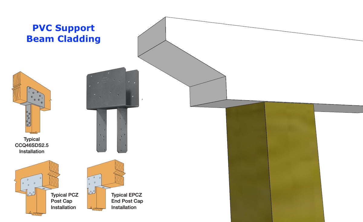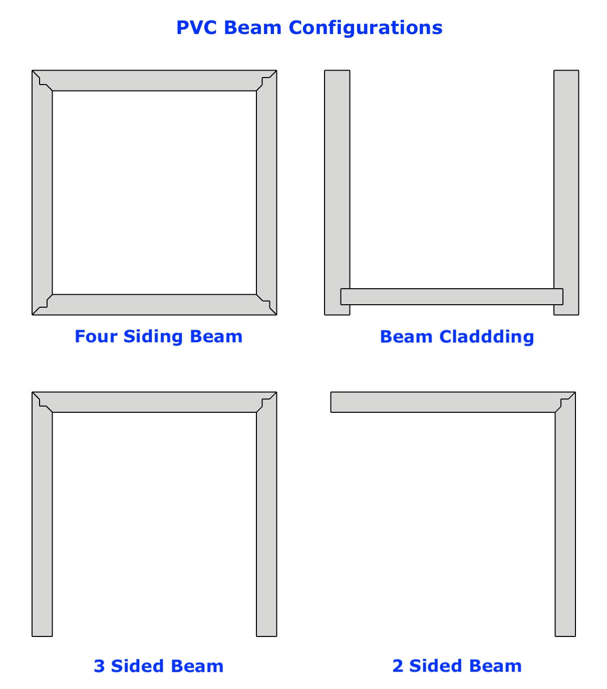 6" PVC Beam, Non-Strutural, Four-Sided - The size is 6" square in various lengths. Our Beams do not require painting as we make them by folding and laminating panels of PVC that are cut out of sheets. All the corners of the beams end up perfectly smooth with no open pours where dirt may build up.