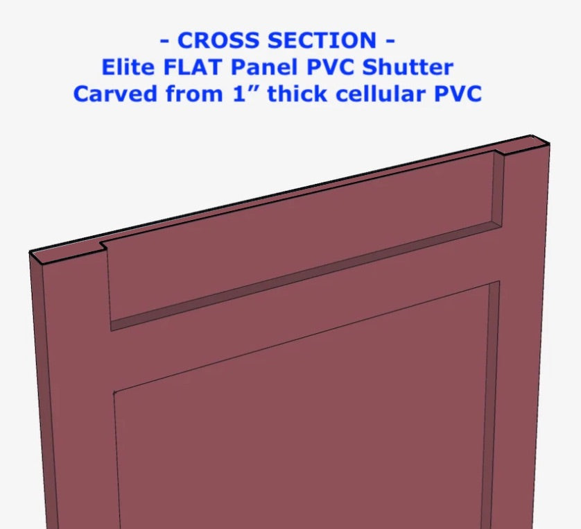 A set of Cellular PVC FLAT Paneled Shutters 1" thick. To be custom made to order with Cellular PVC to last a lifetime. Shutters include PVC mounting cleats.