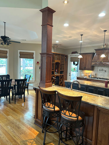 Square, HALF Recessed Paneled, Hardwood Column 8" x 8 or 9 feet made to complement our Elite Recessed Wall Panel Wainscoting using the same trims and proportions or on its own. We ship this completely UNASSEMBLED to reduce shipping cost. The shaft being unassembled, can easily be wrapped around a support post.