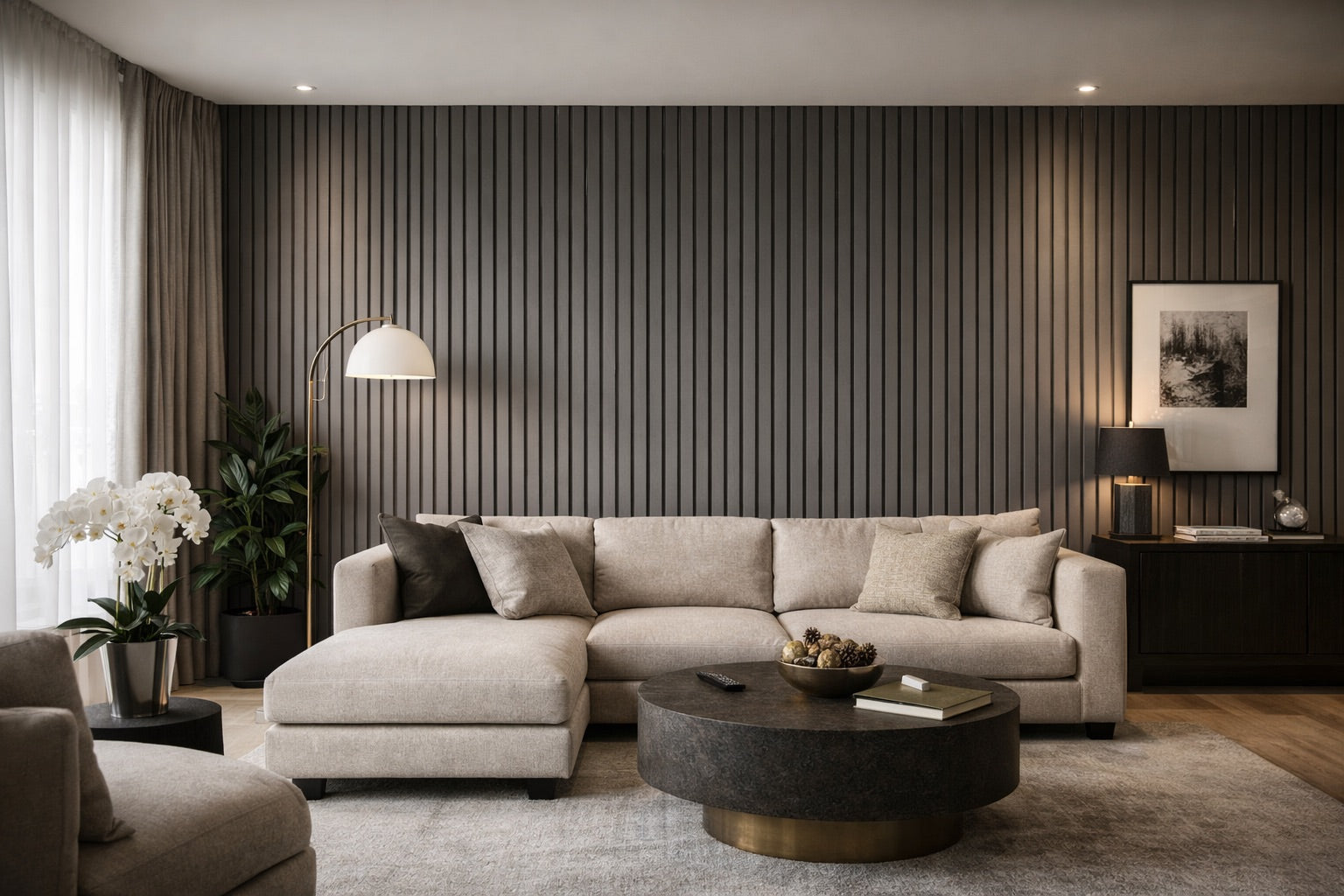 Wide Slat Wood Wall Panels provide a fast, refined solution for transforming interiors with a modern architectural finish. Designed for contractors, builders, and designers, these panels are crafted from raw MDF and supplied unfinished, allowing for on-site priming and painting to achieve precise color matching for any project.