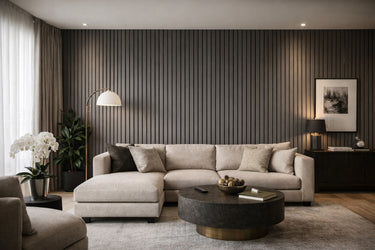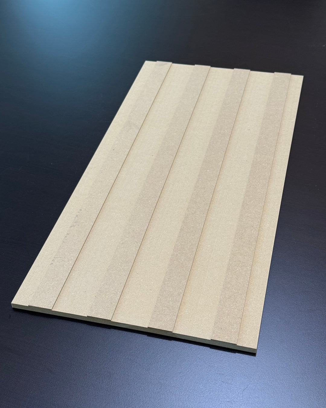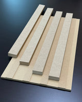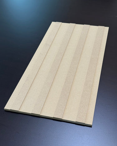 Each 10" wide and ⅜" thick panel includes loose, individual 1½" wide slats that mount onto a precision-grooved MDF backer. This system ensures consistent 1" spacing and delivers a clean, high-end appearance. Panels install seamlessly side by side, eliminating visible joint lines and creating a continuous, professionally installed wall surface.