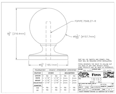 Polyurethane Finial Ball – 6 7⁄32" Diameter