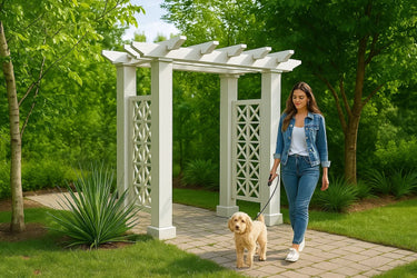 Elevate your Garden Entryway with our newest innovation — the Roman Garden Entry Arbour, now featuring elegant Roman lattice panels. Designed with lasting beauty and minimal maintenance in mind, this arbour is crafted from premium Cellular PVC that won't fade, rot, or warp. It never needs painting — unless you want to customize the color to suit your style.