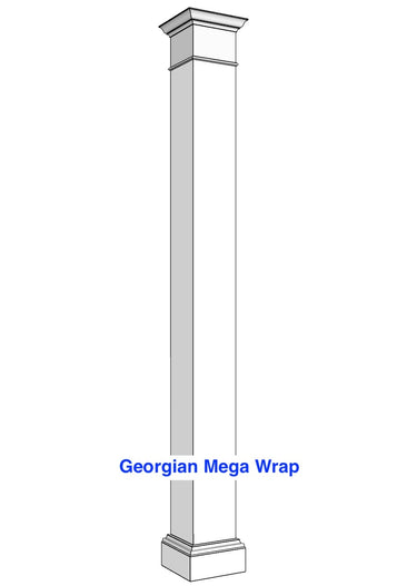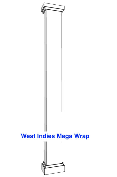 Our Mega Wraps come complete with a few convenience items for ease of installation, including specifically formulated PVC adhesive, tape, large installation cleats, and detailed instructions. The column shaft is made from four 3/4" thick PVC panels with a lock mitre joint for glue assembly. The actual outside dimension of the shaft is approximately 17 ⅞", and the inside measurement is about 16" square. The Contemporary and West Indies capitals both have an upper footprint of about 20". In contrast, the Georgian upper footprint ranges from 20" to 24", depending on the height of the column.