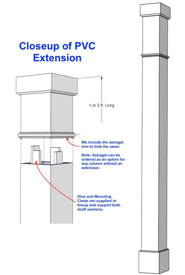 Comes complete with 3 oz of PVC adhesive, tape, installation cleats, mounting hardware and instructions. The column shaft is made from four ½” thick PVC panels with a lock mitre joint for easy glue assembly. The shaft’s outside dimensions are 6", with a 5" square inside. These wraps will fit around a 4" wooden post but are not suitable for a 6" post. For a 6" post, we recommend using an 8" PVC Column Wrap.
