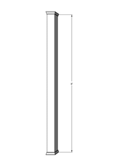 The column shaft is made from 4 pieces of ⅜" to ½" thick PVC, making the inside dimension about 4" x 4". with a lock-metered edge on all sides for easy assembly.  This Column comes flat packed with adhesive, tape, and all the parts pre-cut for a Cap and Base (as shown).  Some shimming material may be required.