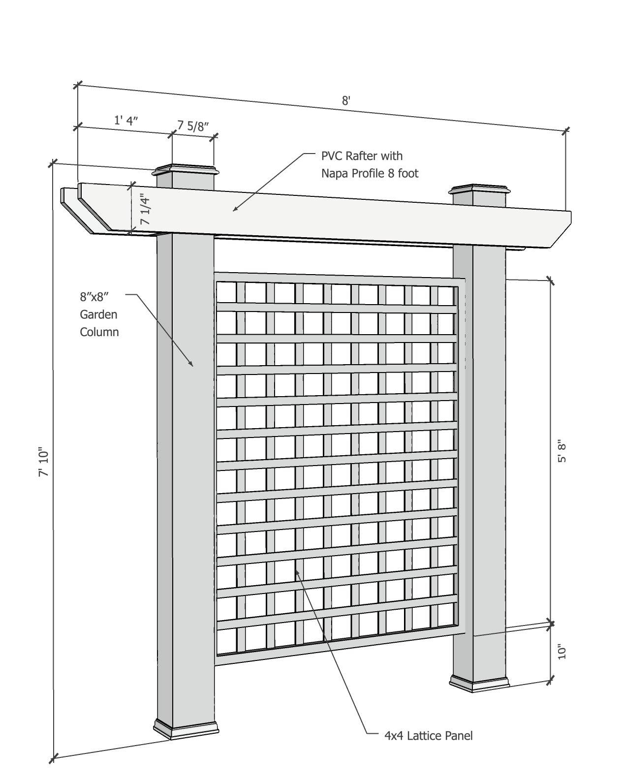 Each kit includes two 8x8 Garden Columns Wraps (7 ⅝ ” true size) complete with capital, base, adhesive, tape, and assembly hardware for a seamless build. You’ll also receive your choice a decorative lattice or privacy panel with a reinforced frame — or the option to have no panel at all, allowing you to create your own design.