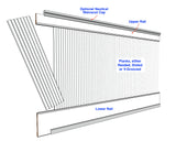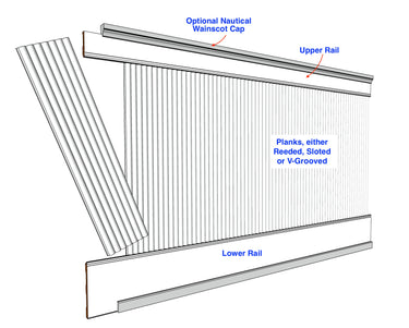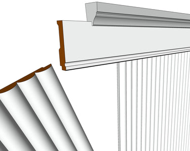 The kit uses ½" thick primed MDF planks and upgraded rails that improve both performance and appearance. The Bottom Rail is notched so the panels drop in cleanly and create a strong visual base. The Top Rail is also notched, reducing finishing work and producing a neat, professional line. A PVC Cap and Shoe Trim offer impact and moisture resistance, making them ideal for kitchens, bathrooms, and high-use areas.