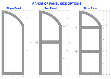 Total Height H1 ___ "  Height to Curve H2 ____" Height of Arch H3 ___"   Width ___ "  P1 ___  P2 ___ all to the nearest  ⅛"