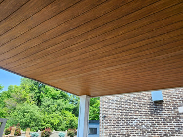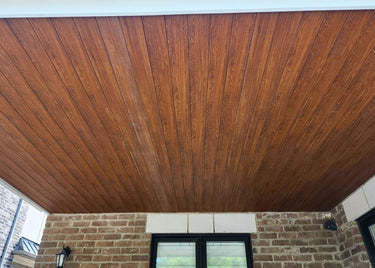 Discover the StainCraft Tongue and Groove Soffit Board in Honey Oak—a durable and stylish choice for outdoor ceilings or accent walls. Crafted from long-lasting wrapped cellular PVC, these planks feature a Blind Nail joint for a secure fit that lasts a lifetime.