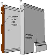 PVC Rail Elite Beadboard, Shiplap or Shaker Wainscot Systems, 5/8" X 7 5/8" high, 8ft long*. This serves as both the baseboard and the lower rail. The stiles or planks rest on top instead of a standard baseboard that overlaps on top of the stiles. This profile has 3/8" dado to work with 3/8" thick planks or the Elite Beadboard System as a base rail or baseboard.
