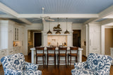 Recessed Wood Main Header Ceiling Beam, in raw MDF with a recessed bottom panel that shows no visible seam. Actual size is 14" x 8" tall and can easily be trimmed on site. The side panels are ⅝" and the lower facing panel is about ⅜", three sides in total. Beams come flat packed to be assembled on-site.