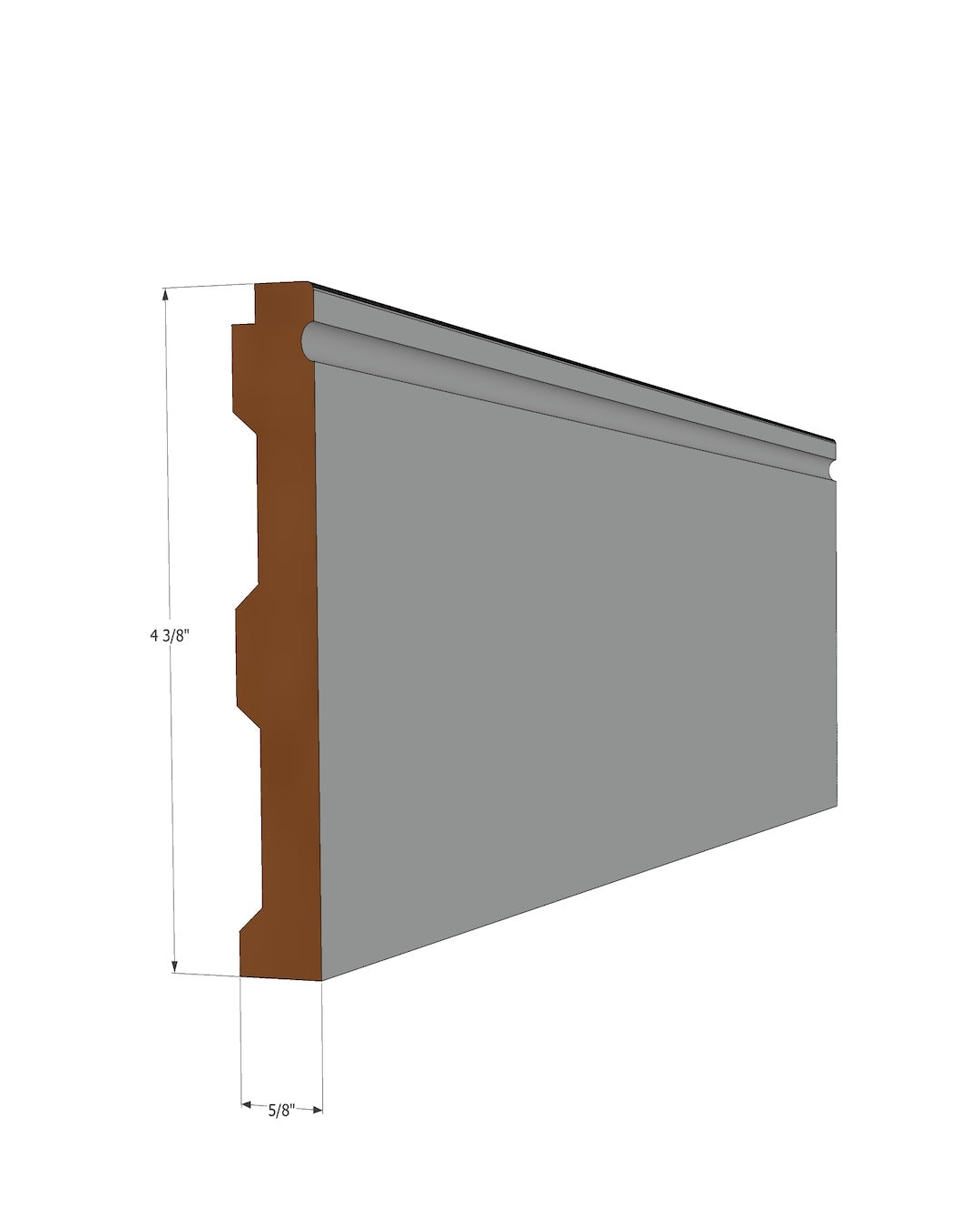 This upper rail is made from primed MDF, measuring 4 ⅜” high x ⅝” thick and 8 feet long (or 95” when shipped via UPS).